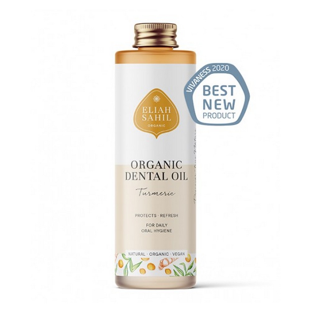 Aceite dental de Cúrcuma, efecto antibacteriano, fortalece las encías, asegura un aliento fresco y una flora bucal y laríngea sana.